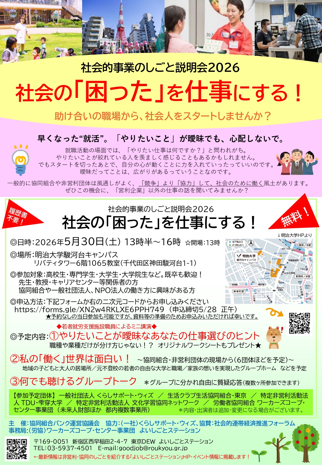 お問合せ主催:協同組合バンク運営協議会 事務局:ワーカーズコープ・センター事業団 よいしごとステーション