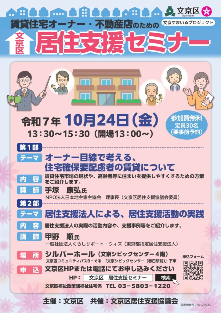 文京区主催『居住支援セミナー』のお知らせ 第2部くらしサポート・ウィズ講演