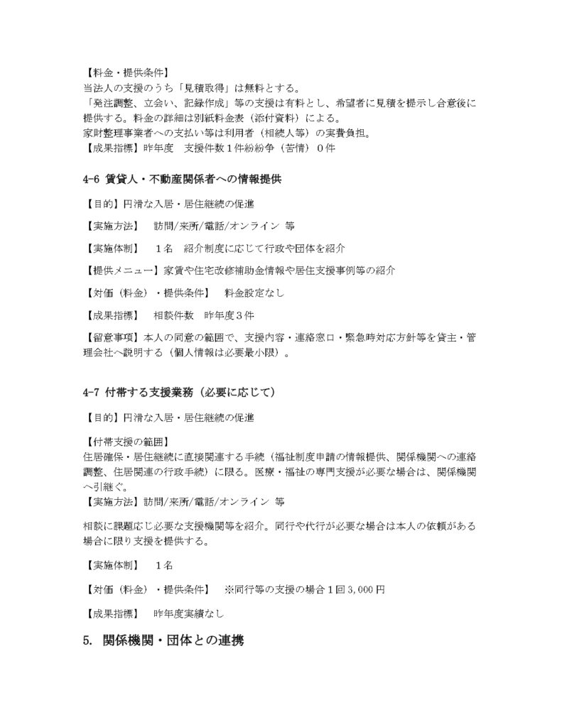 - 他の支援団体や不動産会社と協力して、すまいの情報提供、マッチング、一緒に手続きします