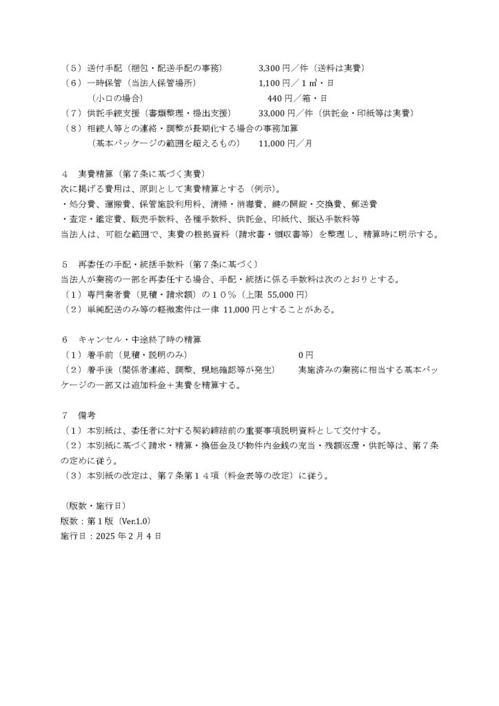 事業計画書・料金表 ※クリックすると表示されます